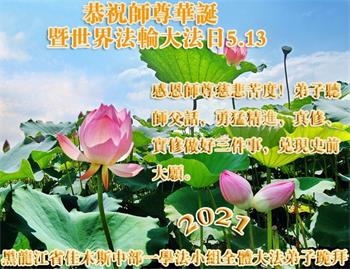 黑龙江省佳木斯市中部一学法小组全体大法弟子恭贺世界法轮大法日暨师尊华诞!