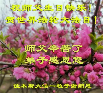 弟子用尽人间的语言也表达不了对师父感恩,弟子只有多学法,多向内找修好自己,多去执着心,做好三件事,圆容好整体。 黑龙江省佳木斯市汤原县大法弟子恭祝世界法轮大法日!恭祝伟大师尊生日快乐!