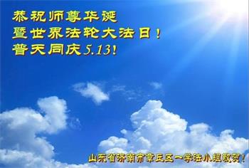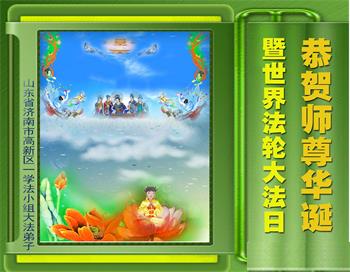 山东省济南市高新区一学法小组大法弟子恭贺师尊华诞暨世界法轮大法日!