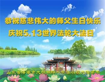 山东省济南一大法弟子恭祝师尊生日快乐!普天同庆世界法轮大法日!