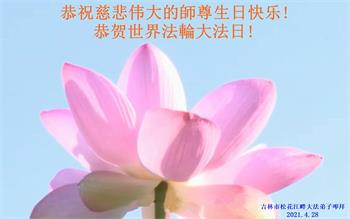 恭祝师尊生日快乐! 吉林省吉林市桦甸市大法弟子五人敬拜 2021年5月2日 吉林省吉林市一大法弟子恭贺世界法轮大法日!