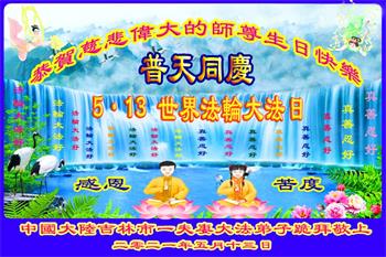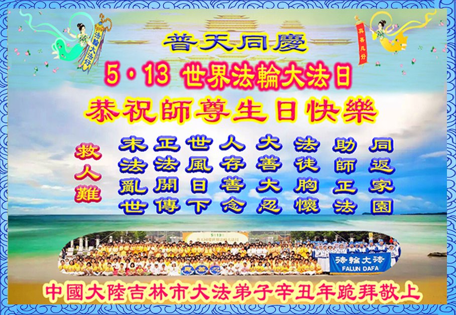 【明慧网二零二一年五月十日】 吉林省吉林市十四位大法弟子恭祝师尊生日快乐!恭贺世界法轮大法日!