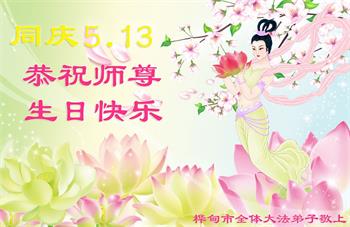 吉林省吉林市桦甸市大法弟子恭祝慈悲伟大的师尊生日快乐!恭贺5.13世界法轮大法日! 吉林省桦甸市大法弟子恭贺法轮大法日!