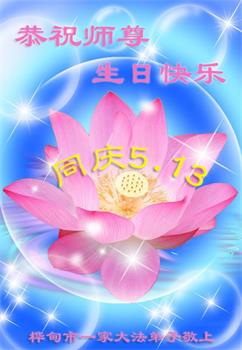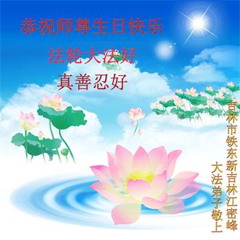 吉林省吉林市桦甸市一家大法弟子恭祝师尊生日快乐! 吉林市松花江畔大法弟子恭祝慈悲伟大的师尊生日快乐!恭贺世界法轮大法日!