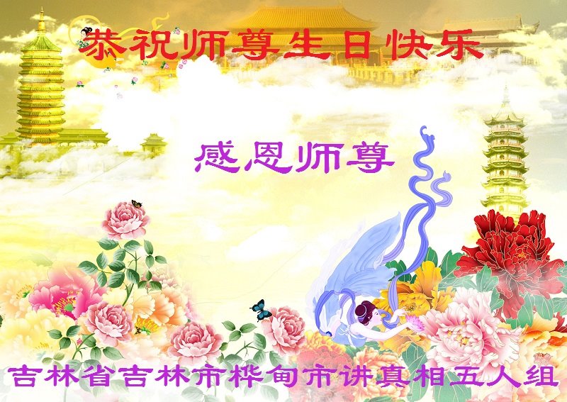 师尊好!恭祝师尊生日快乐!弟子想念师尊。 吉林省桦甸市大法弟子恭贺法轮大法日
