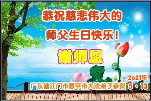 【明慧网二零二一年五月十日】 广东省江门市恩平市大法弟子恭祝师父生日快乐!