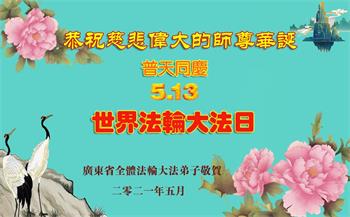 广东省全体法轮大法弟子恭祝慈悲伟大的师尊华诞!普天同庆5.13世界法轮大法日!