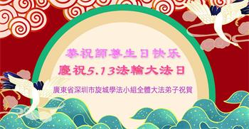 广东省深圳市旋城学法小组大法弟子恭祝师父生日快乐!恭贺5.13法轮大法日!