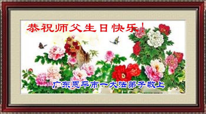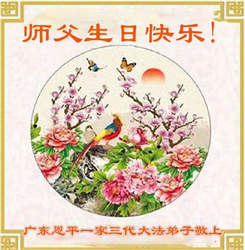 恭祝师父生日快乐! 广东恩平市一家三代大法弟子敬上 广东省江门市恩平市一大法弟子恭祝师父生日快乐!