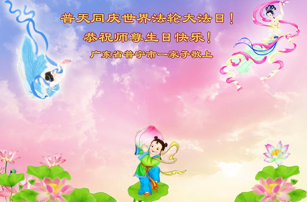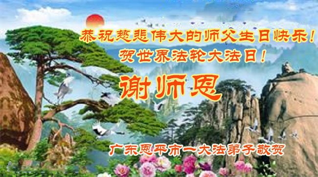 恭贺世界法轮大法日! 恭祝慈悲伟大的师父生日快乐!恭贺世界法轮大法日! 谢师恩! 广东恩平市一大法弟子敬贺 广东省揭阳市普宁一家人恭祝师尊生日快乐!