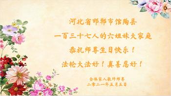 河北邯郸弟子及全家恭祝师父生日及法轮大法日!
