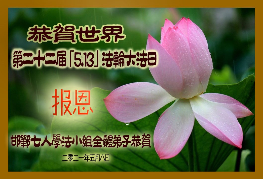 【明慧网二零二一年五月十日】 河北省邯郸七人学法小组全体大法弟子恭贺第二十二届世界法轮大法日!