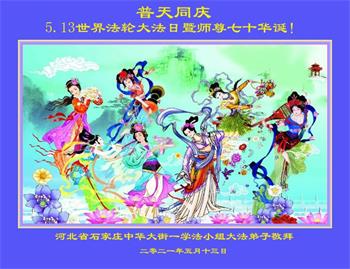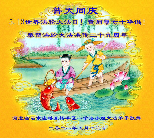 恭贺5.13世界法轮大法日! 河北省石家庄桥东裕华区一学法小组大法弟子恭贺法轮大法日!