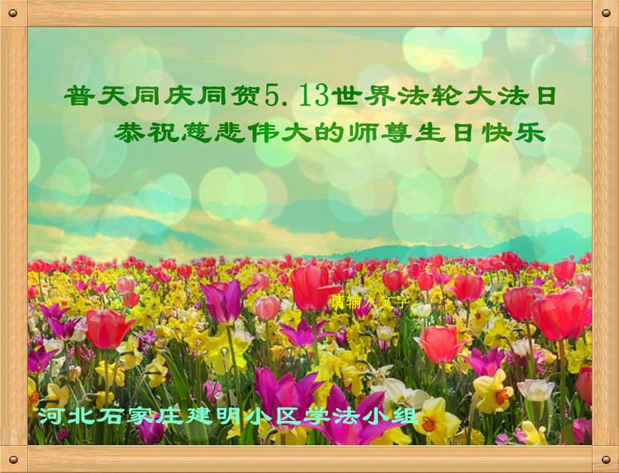 在最后的这段时间里,我们一定珍惜师尊用巨大付出延长来的时间,真修实修,多救人,完成自己的历史使命,圆满随师归。 河北石家庄长安区一大法弟子恭贺世界法轮大法日!