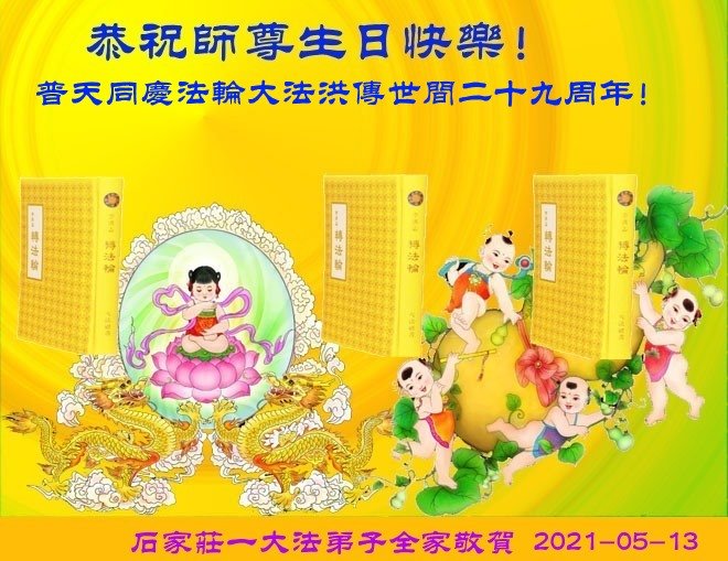 河北省石家庄一大法弟子全家恭祝师尊生日快乐!普天同庆法轮大法传世29周年!