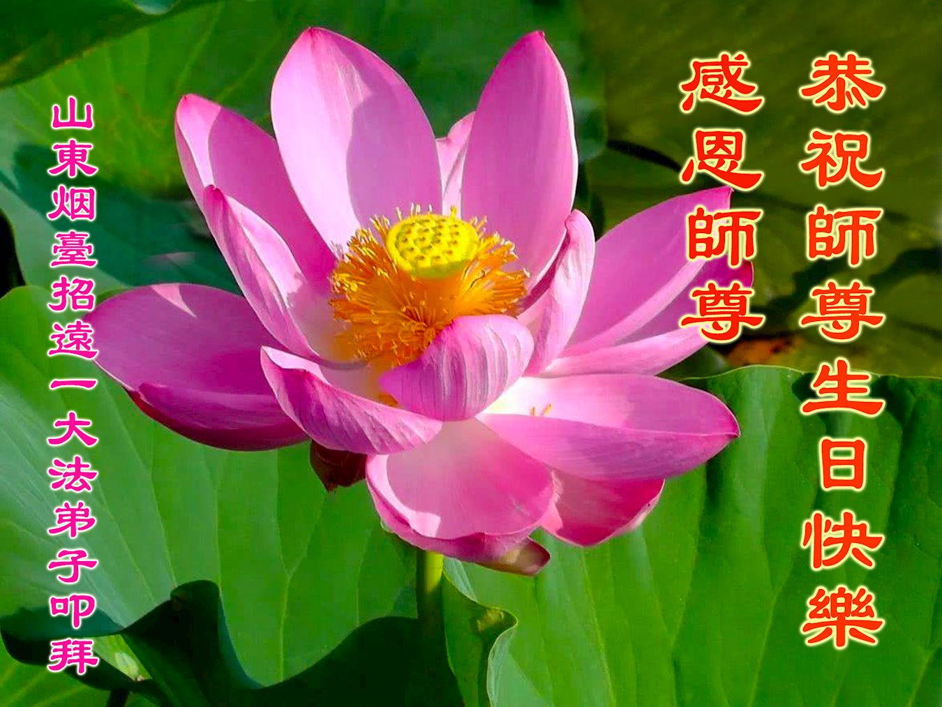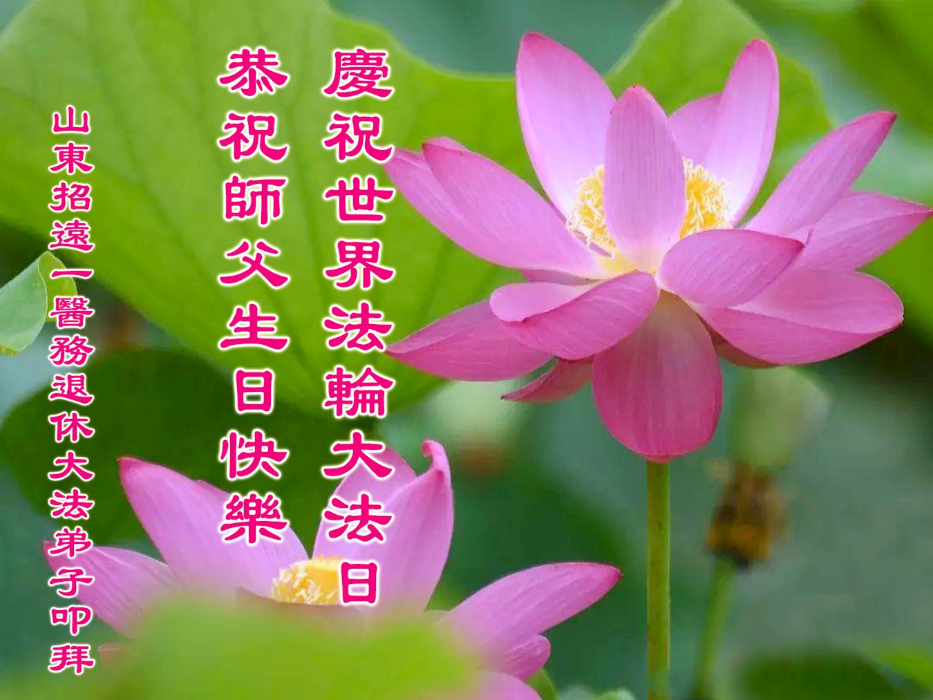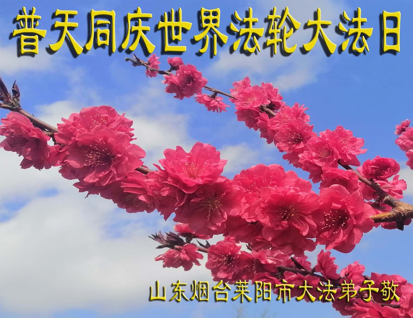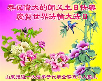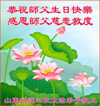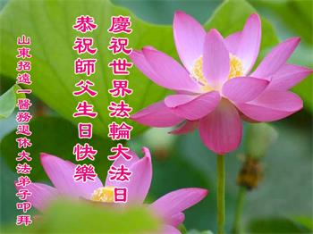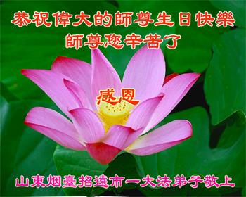 普天同庆世界法轮大法日! 山东省烟台市莱阳市大法弟子恭祝师尊生日快乐!