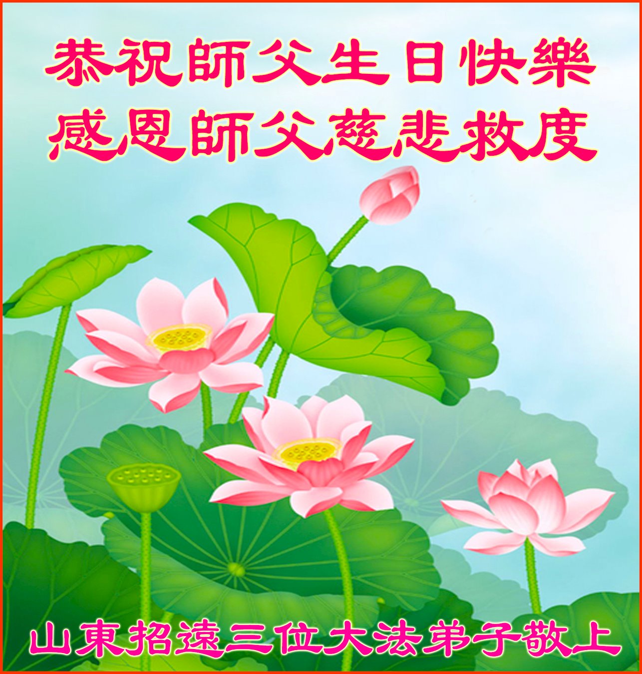 山东省东营市大法弟子恭祝师尊生日快乐!
