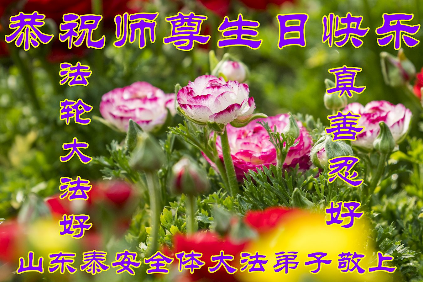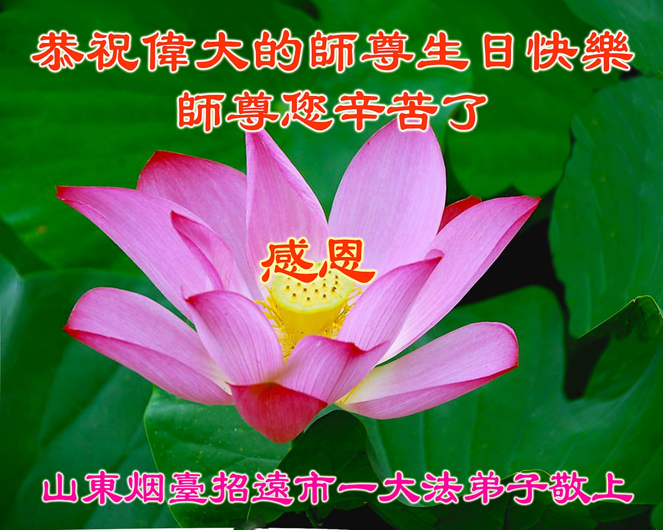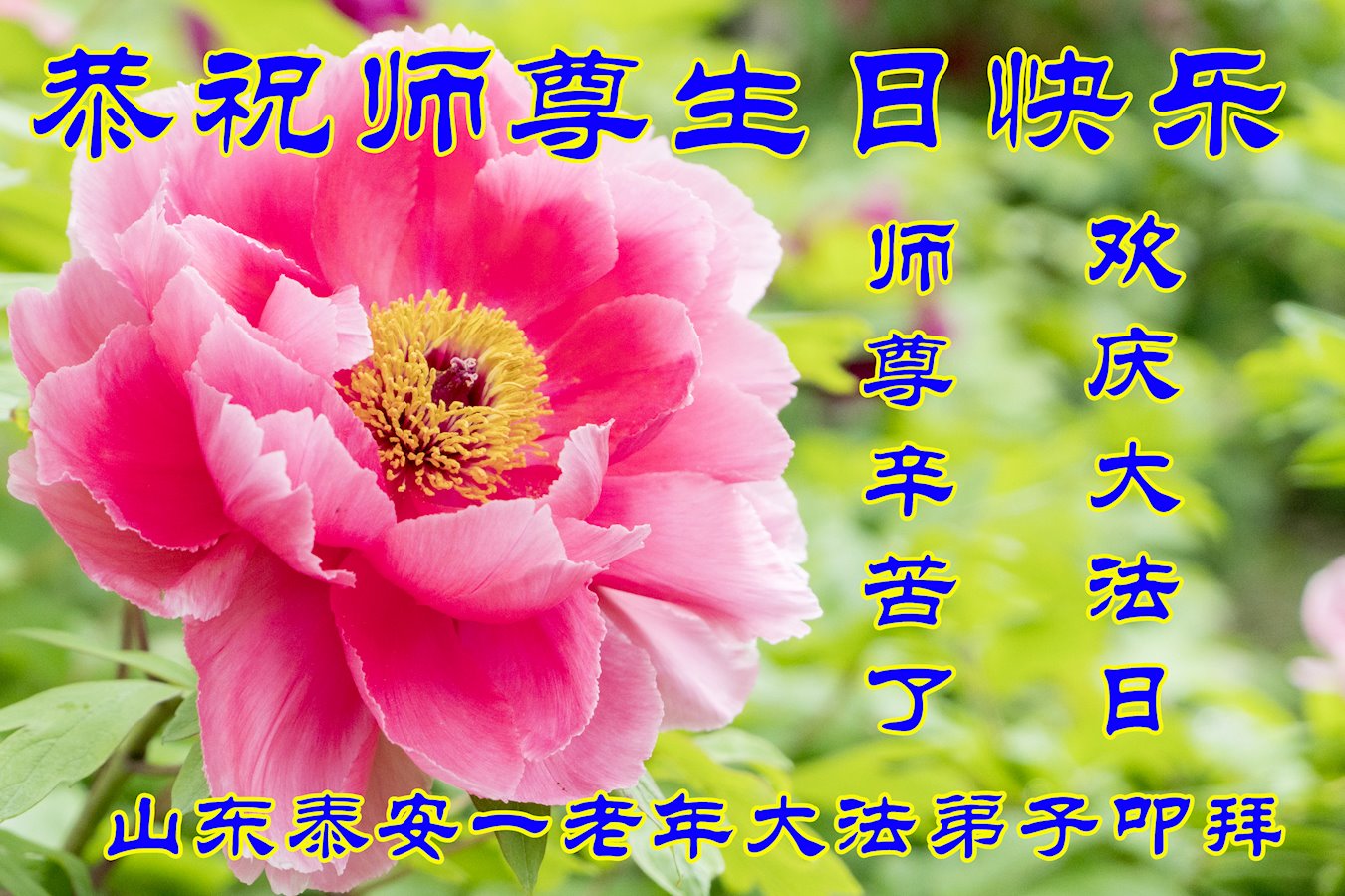 山东省泰安市全体大法弟子恭祝师尊生日快乐!