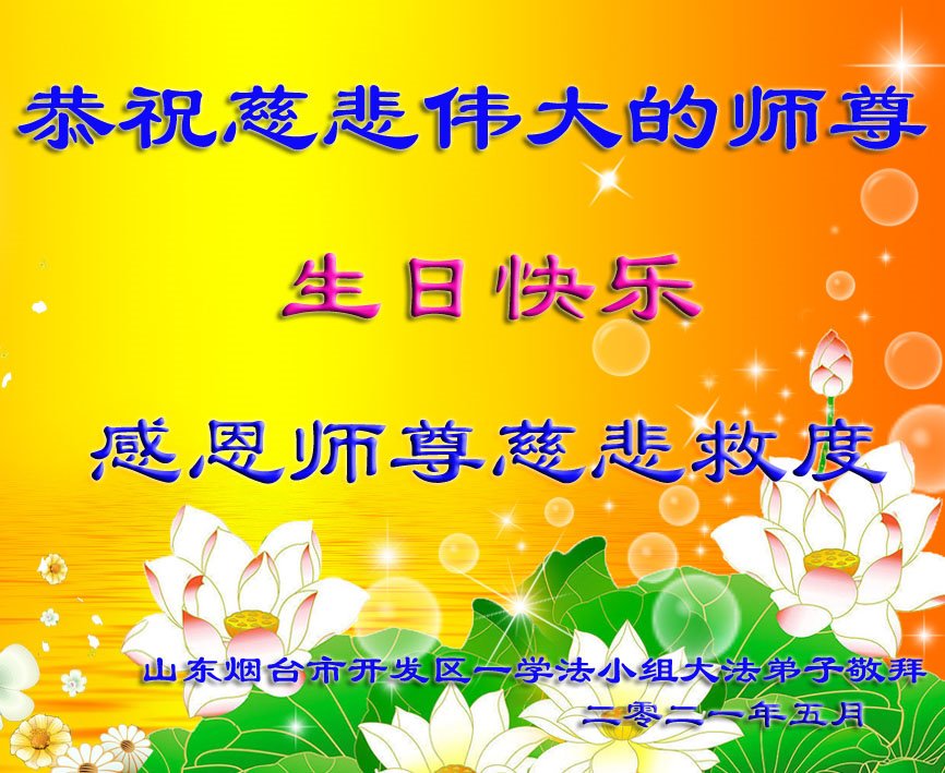 【明慧网二零二一年五月十一日】 山东省烟台市招远市大法弟子及家人恭祝师尊生日快乐!