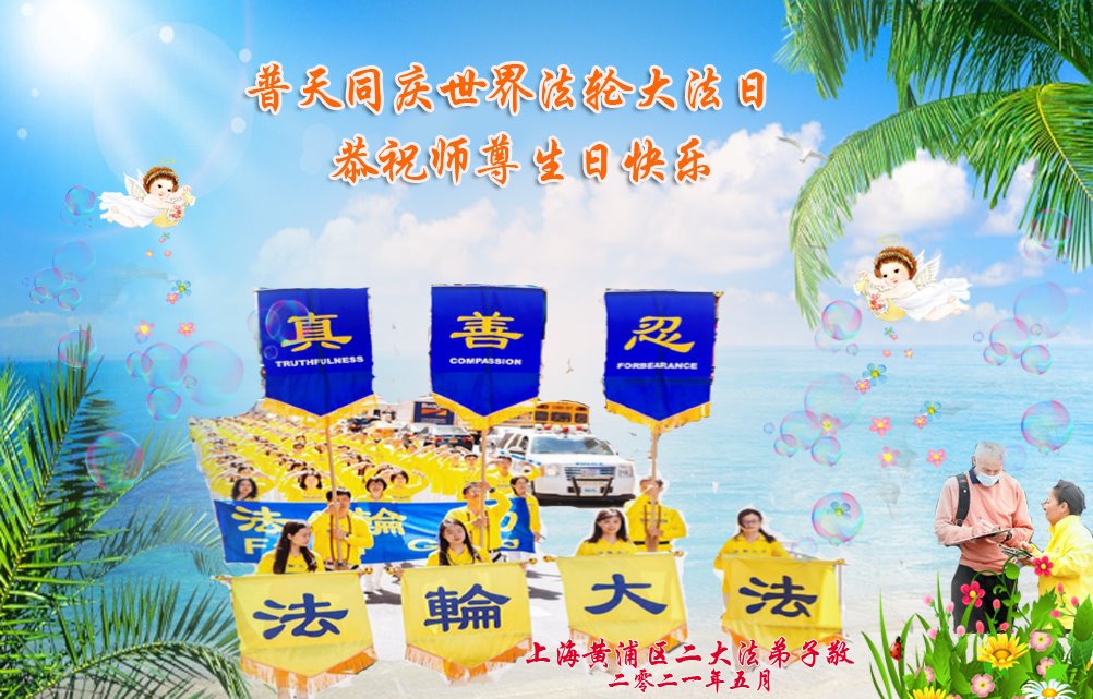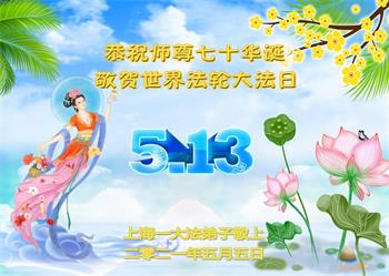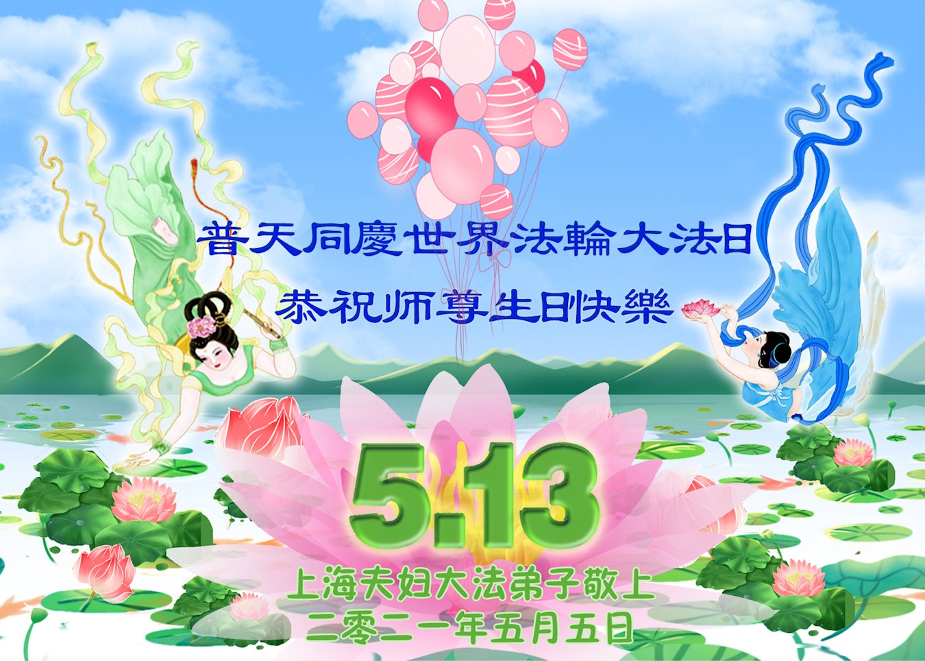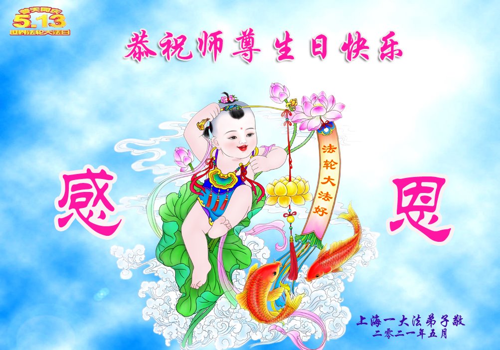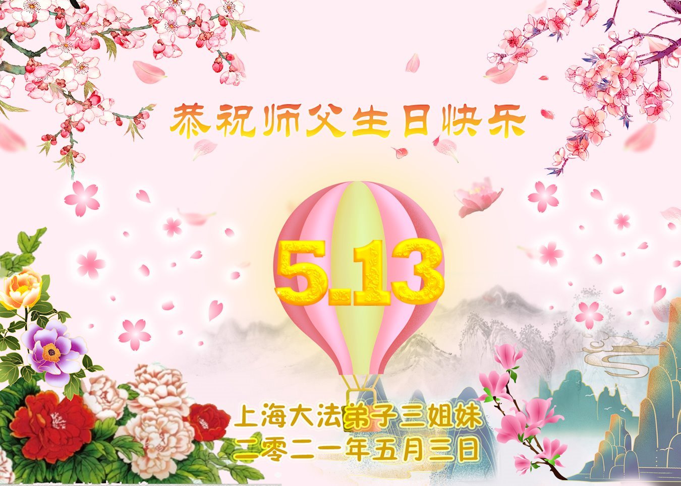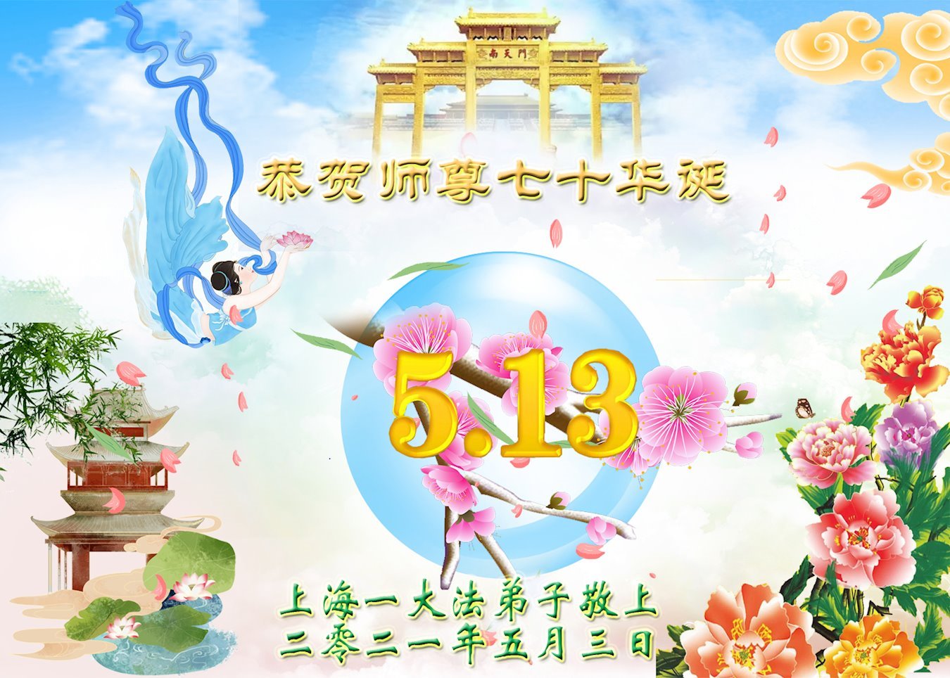 【明慧网二零二一年五月十一日】 上海市俩弟子:恭祝师尊生日快乐!感恩师尊慈悲救度!庆祝5.13世界法轮大法日!