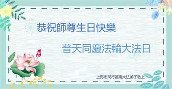在世界法轮大法日来临之际,上海一大法弟子恭祝伟大师尊生日快乐! |