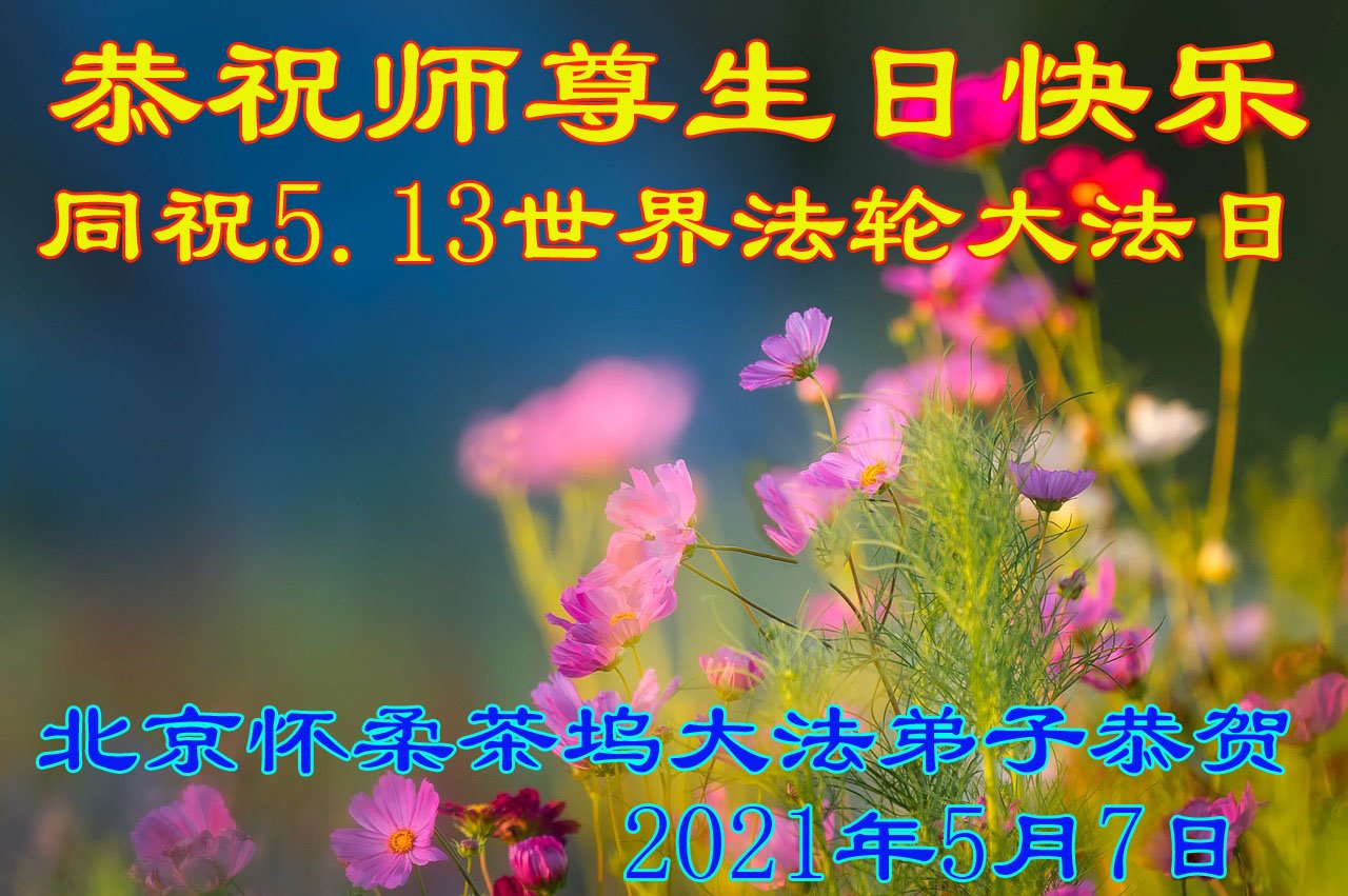 【明慧网二零二一年五月十一日】 北京怀柔茶坞大法弟子恭祝师尊生日快乐!普天同庆5.13世界法轮大法日
