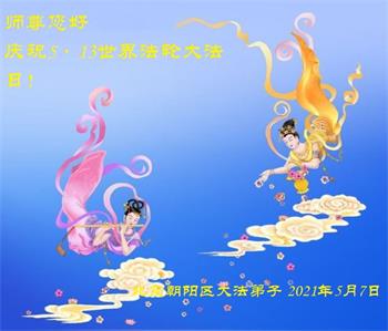 感谢师父,我敬师敬法。有师有法,使我家庭和睦,儿女很乖。 北京市通州区大法弟子恭祝师尊生日快乐!恭贺世界法轮大法日!