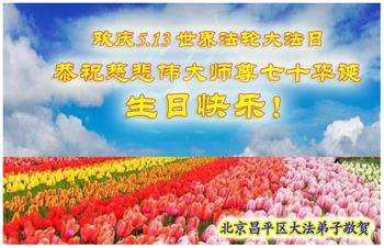 北京昌平区一大法弟子亲属恭贺法轮大法日!祝师父生日快乐!
