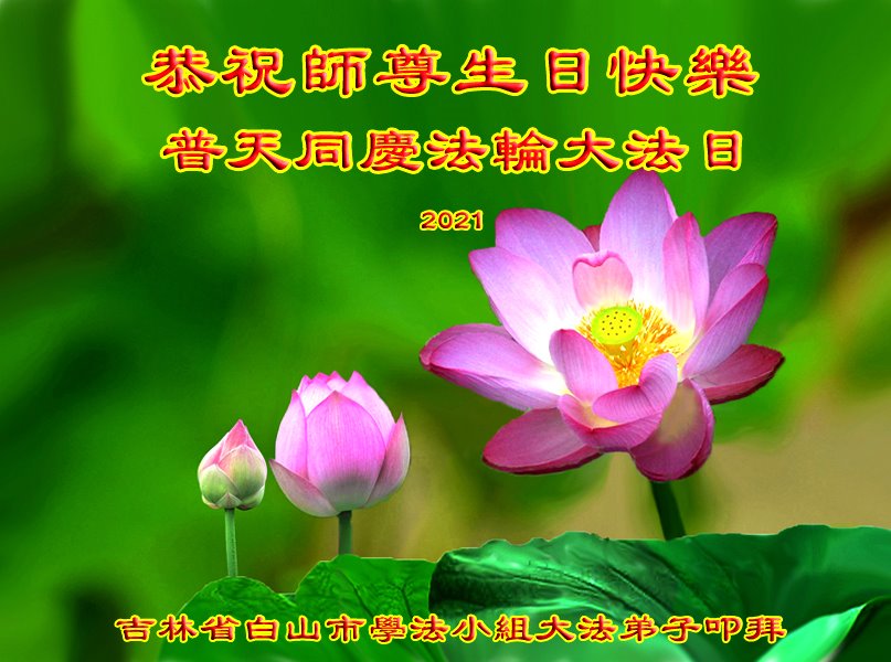 弟子全家感恩师父的慈悲救度!谢谢师父! 吉林省通化一老年大法弟子祖孙三代敬上 2021年5月5日 吉林省白城大法弟子敬祝师父生日快乐!恭祝世界法轮大法日!