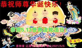 弟子跪拜师尊,敬祝师尊生日快乐!和恭祝世界法轮大法日! 弟子要精進做好三件事,让师尊欣慰和高兴。 吉林省辽源市大法弟子跪拜敬祝 2021年5月5日。 吉林省辽源市大法弟子恭祝师尊生日快乐暨恭贺5.13世界法轮大法日!