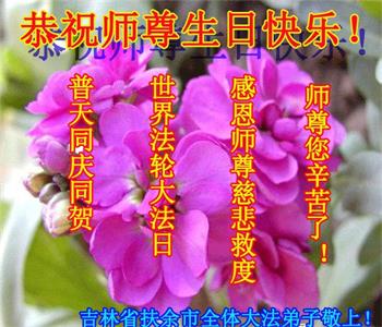 吉林辽源大法弟子敬祝师尊生日快乐!恭贺法轮大法日!
