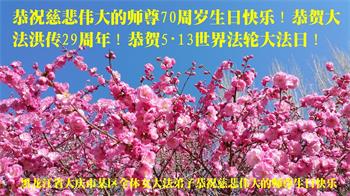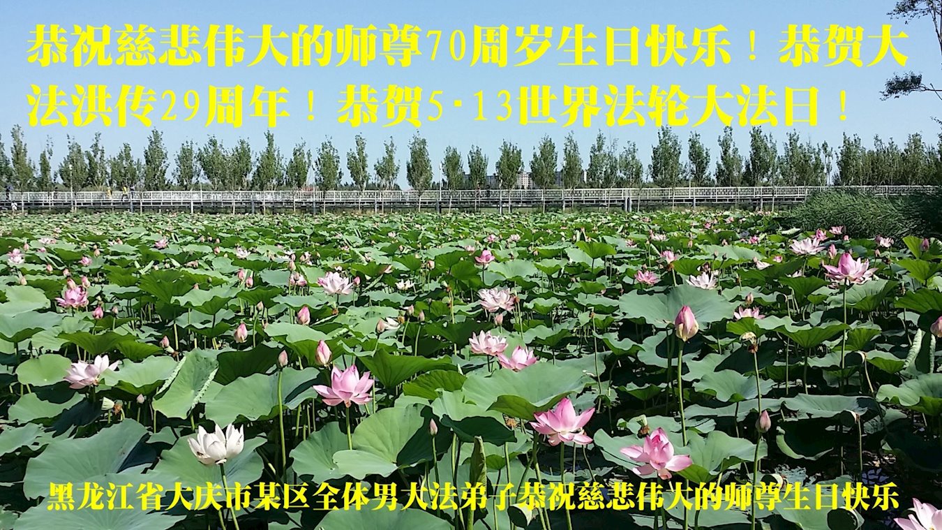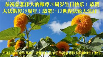 黑龙江省大庆市某区一老年男大法弟子恭祝慈悲伟大的师尊70周岁生日快乐!恭贺大法洪传29周年!恭贺5・13世界法轮大法日!