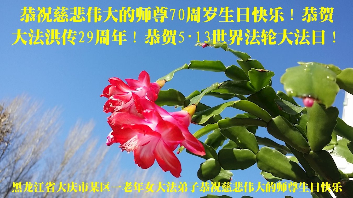 黑龙江省大庆市某区一老年女大法弟子恭祝慈悲伟大的师尊70周岁生日快乐!恭贺大法洪传29周年!恭贺5・13世界法轮大法日!