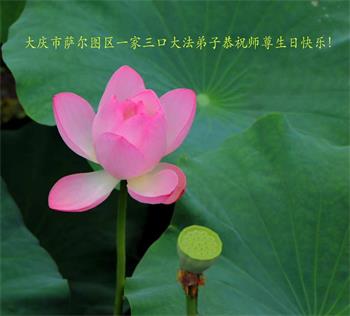 黑龙江大庆市萨尔图区一家三位大法弟子恭祝师尊生日快乐!
