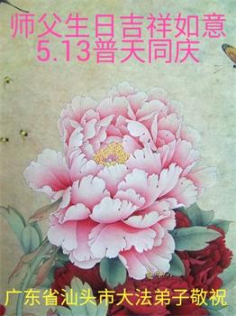 恭祝慈悲伟大的师尊生日快乐!弟子永远跟随师尊,做好三件事! 广东汕头一大法弟子全家恭贺世界法轮大法日!