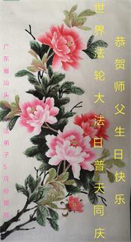 广东省汕头市大法弟子恭祝世界法轮大法日成立二十二周年暨师尊华诞快乐!