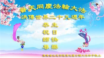 谢谢师尊慈悲的保护与救度,恭祝师尊生日快乐! 广东佛山市二大法弟子恭贺世界法轮大法日!