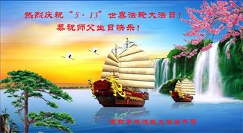 四川成都大法弟子恭贺世界法轮大法日!恭祝师尊生日快乐!