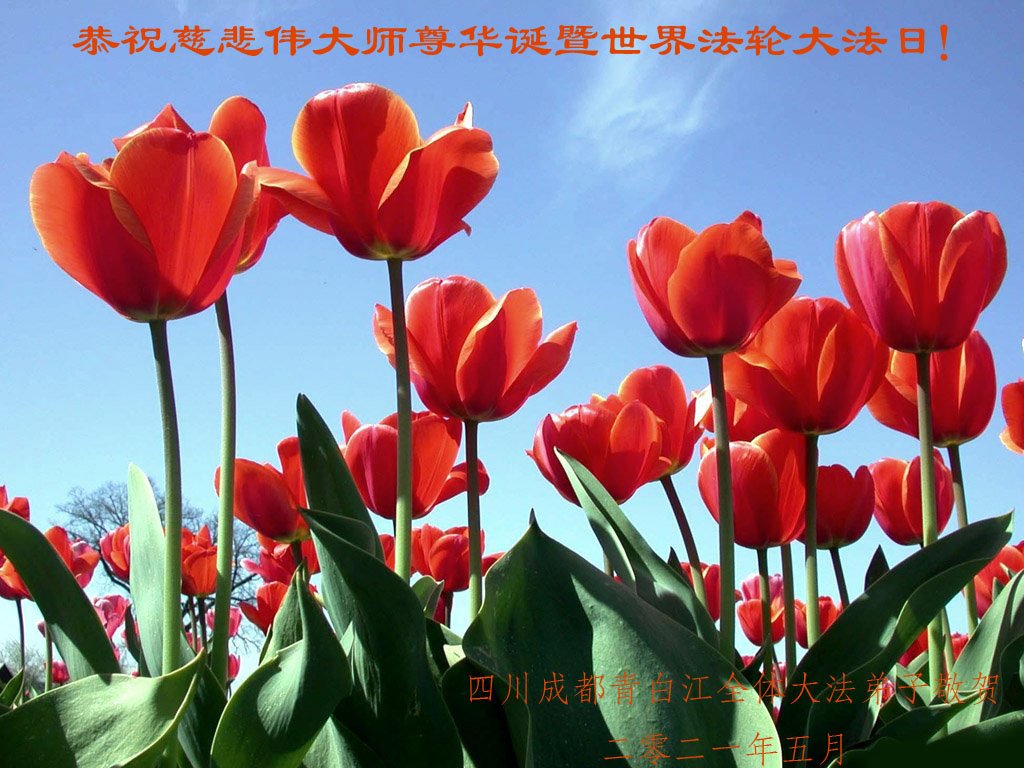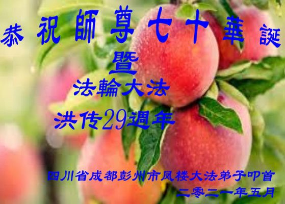 【明慧网二零二一年五月十一日】 四川成都市西门学法小组大法弟子恭祝师尊生日快乐!恭贺法轮大法洪传29周年!