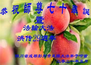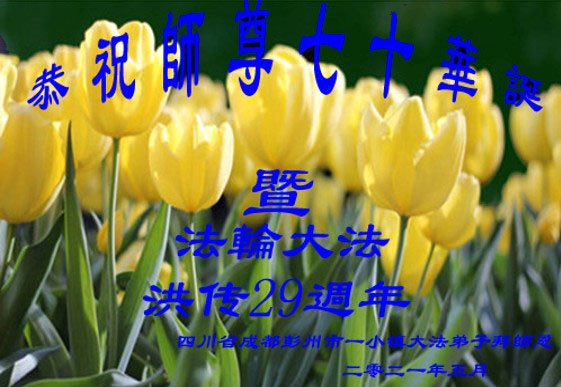 四川成都市一大法弟子恭贺世界法轮大法日暨恭祝师尊生日快乐!