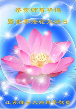 江苏淮安大法弟子及全家祝贺世界法轮大法日暨恭祝师父生日快乐!
