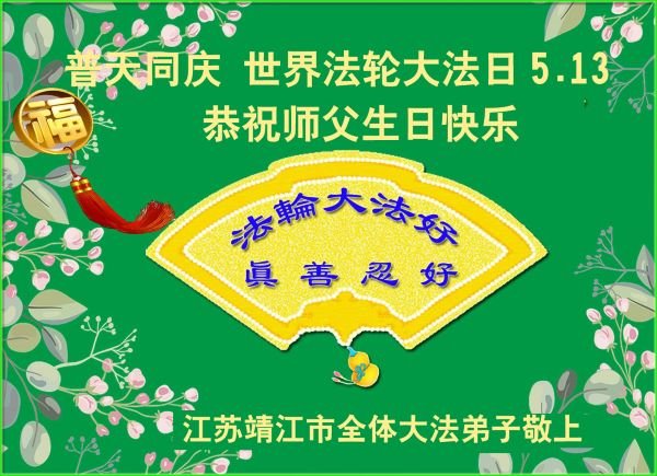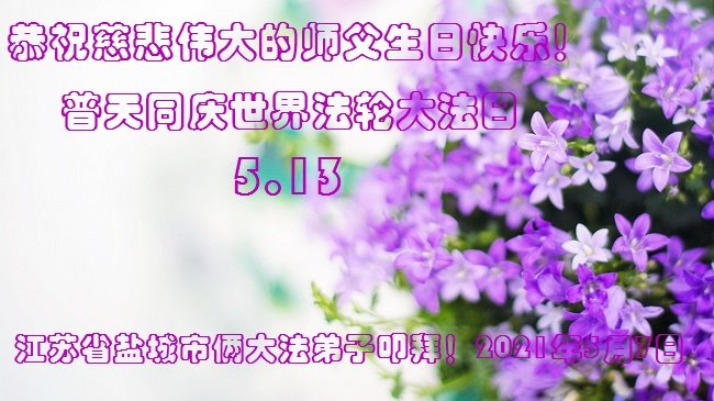 【明慧网二零二一年五月十一日】 江苏省泰州市靖江市全体大法弟子普天同庆世界法轮大法日5.13!恭祝师父生日快乐!