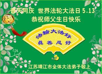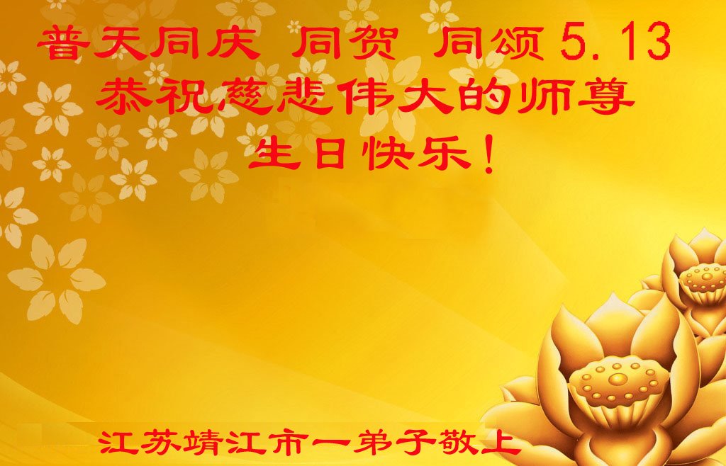 江苏省泰州市靖江市一大法弟子同贺、同颂5.13,恭祝慈悲伟大的师父生日快乐!