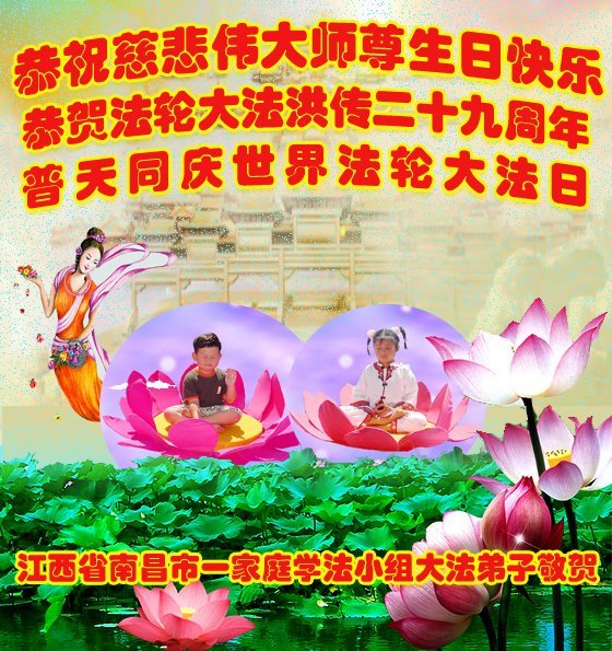 恭贺5.13世界法轮大法日! 江西省南昌市一家庭学法小组大法弟子恭祝慈悲伟大的师尊生日快乐!