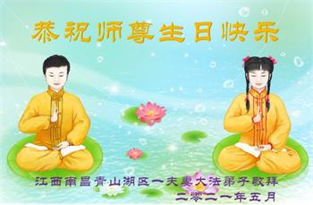 江西省南昌青山湖一夫妻大法弟子恭祝师尊生日快乐!
