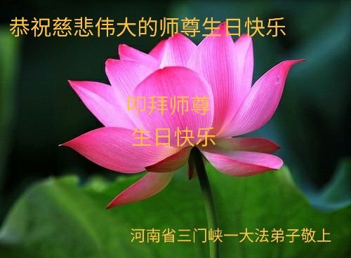 河南省三门峡一大法弟子恭祝慈悲伟大的师尊生日快乐!