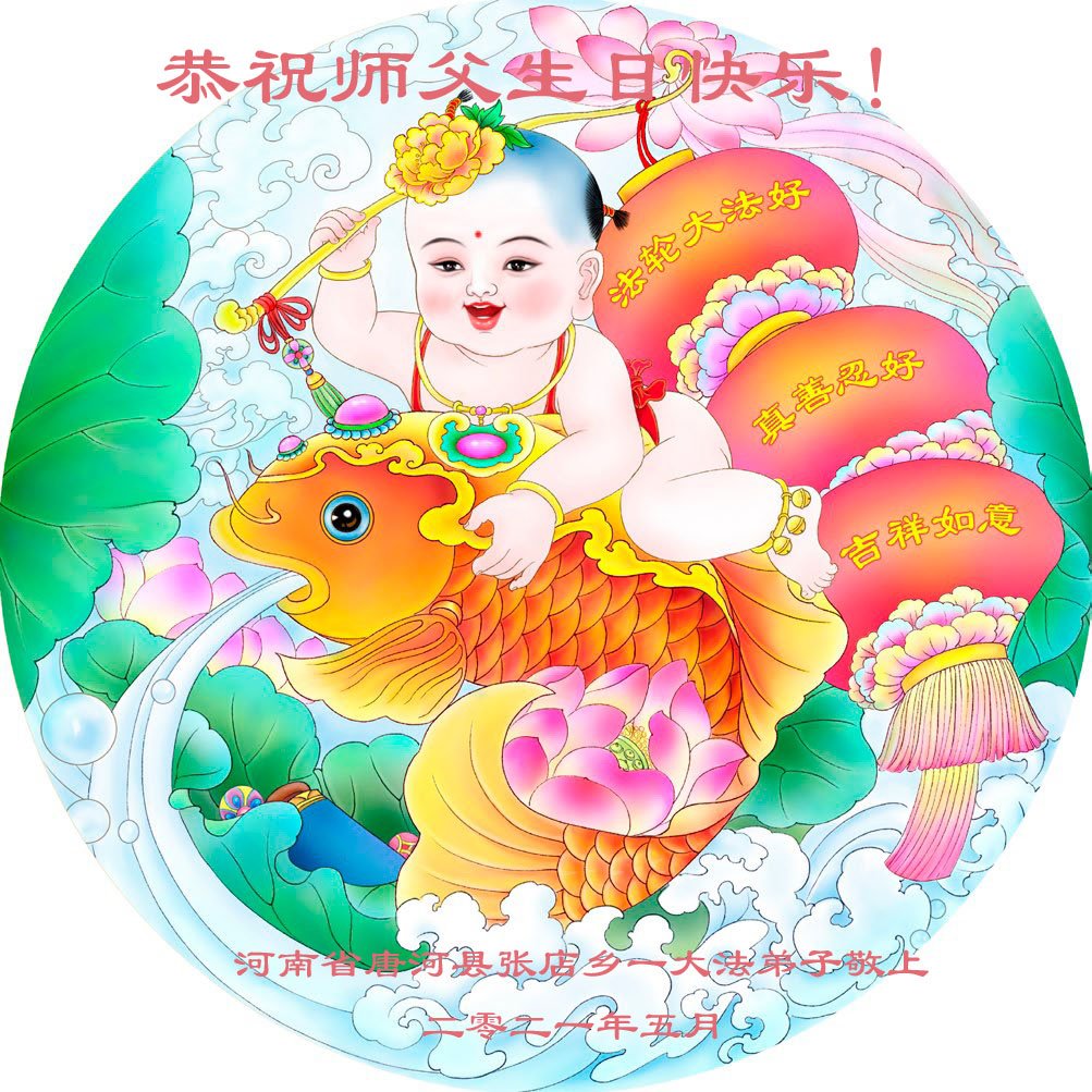 河南省南阳市唐河县张店乡一大法弟子恭祝师尊生日快乐!暨世界法轮大法日!
