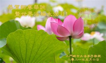 慈悲伟大的师尊好!弟子千言万语表达不尽对师尊的感恩。弟子只有学好法,实修自己。同时,放下为私的心和现有的执着心,遇事多查找自己,多考虑别人的感受,用大法“真、善、忍”的法理来衡量自己,达到法的标准。努力圆容好与家人的关系,展现大法弟子的风采!抓紧时间多救人,完成助师正法救度众生的使命,跟师尊回家。 河南省三门峡市大法弟子恭贺师尊华诞暨世界法轮大法日!
