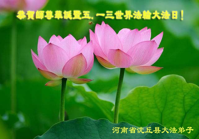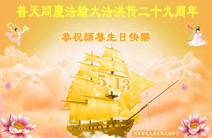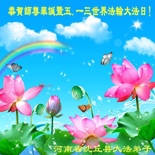 河南省周口市沈丘县大法弟子恭贺世界法轮大法日!恭祝师尊生日快乐!