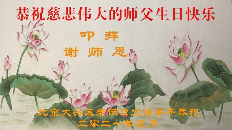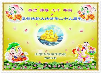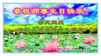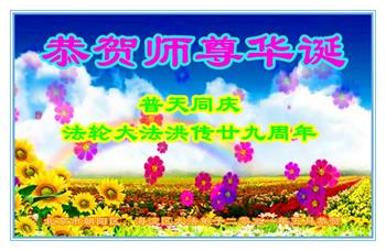 北京市海淀区、朝阳区大法弟子恭祝师尊生日快乐! 普天同庆法轮大法洪传廿九周年 北京昌平一老年大法弟子恭祝师尊七十华诞,恭贺法轮大法日!